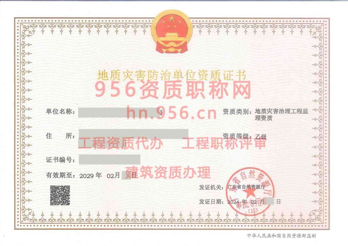 2024年2月广东省乙级地质灾害防治单位【监理】资质证书展示01