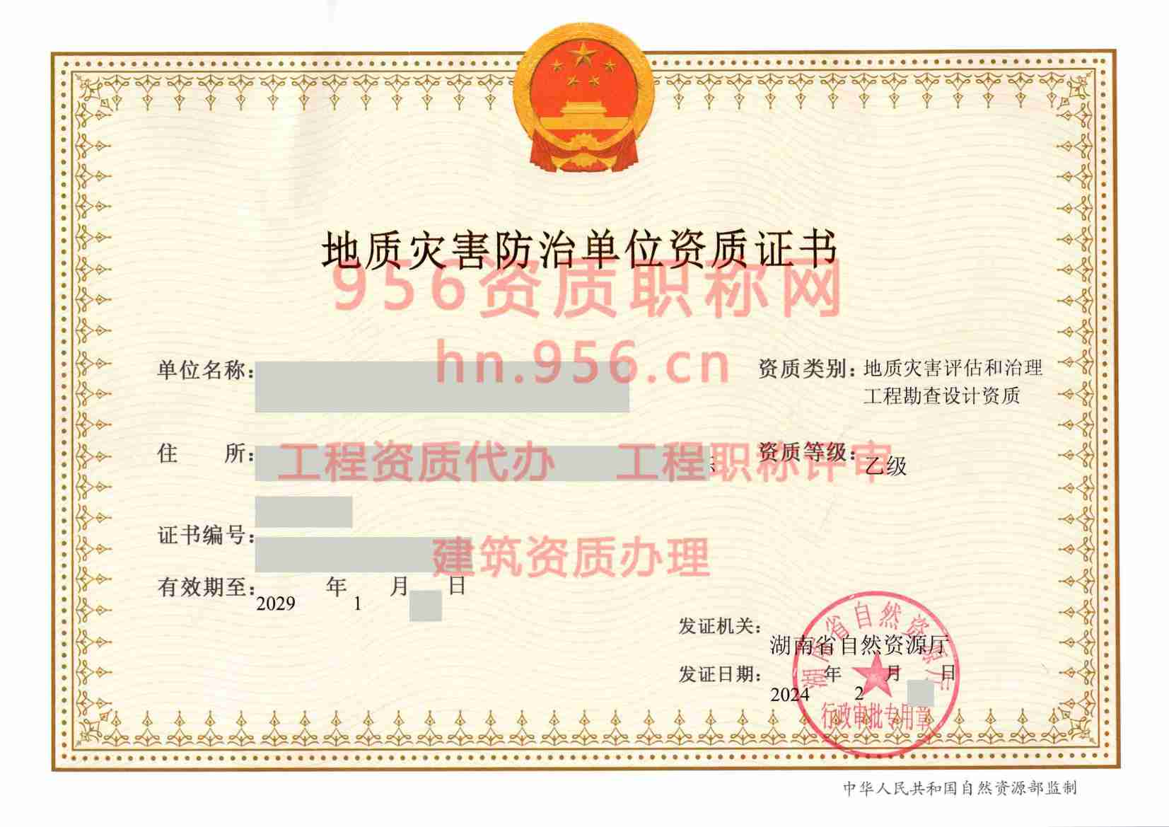 2024年2月湖南省乙级地质灾害防治单位【工程勘查设计】资质证书展示