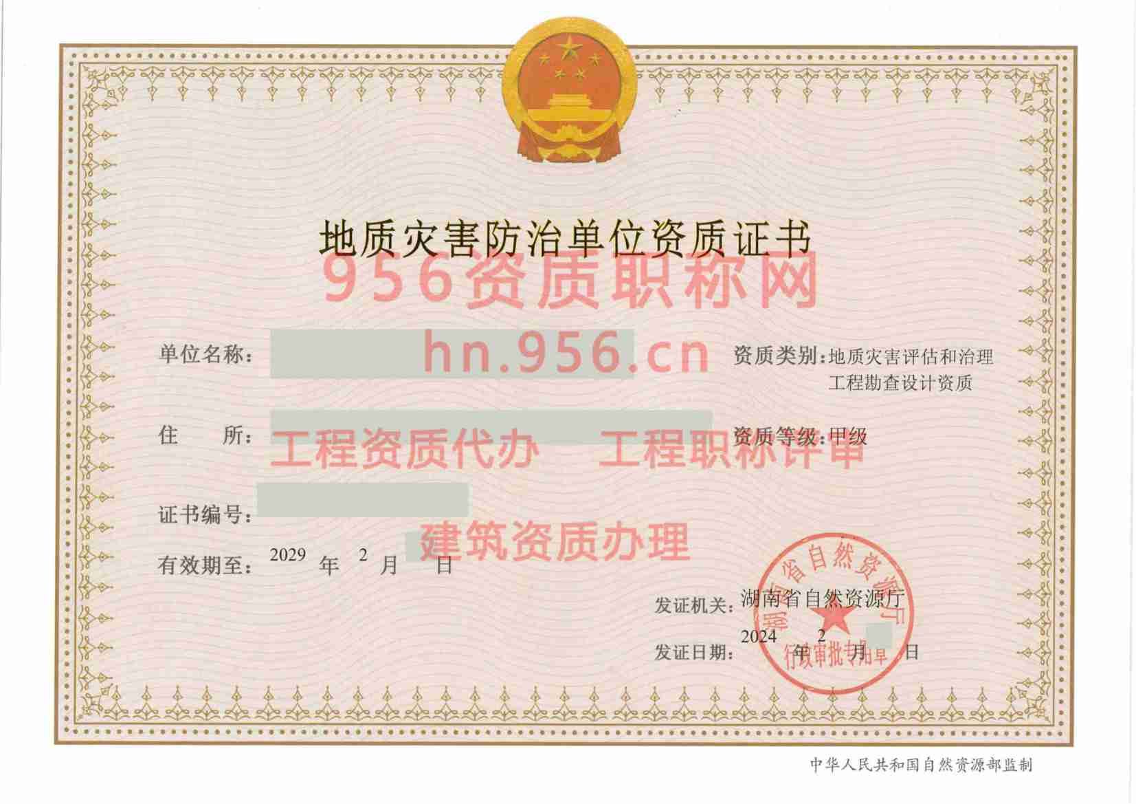 2024年2月湖南省甲级地质灾害防治单位【工程勘查设计】资质证书展示
