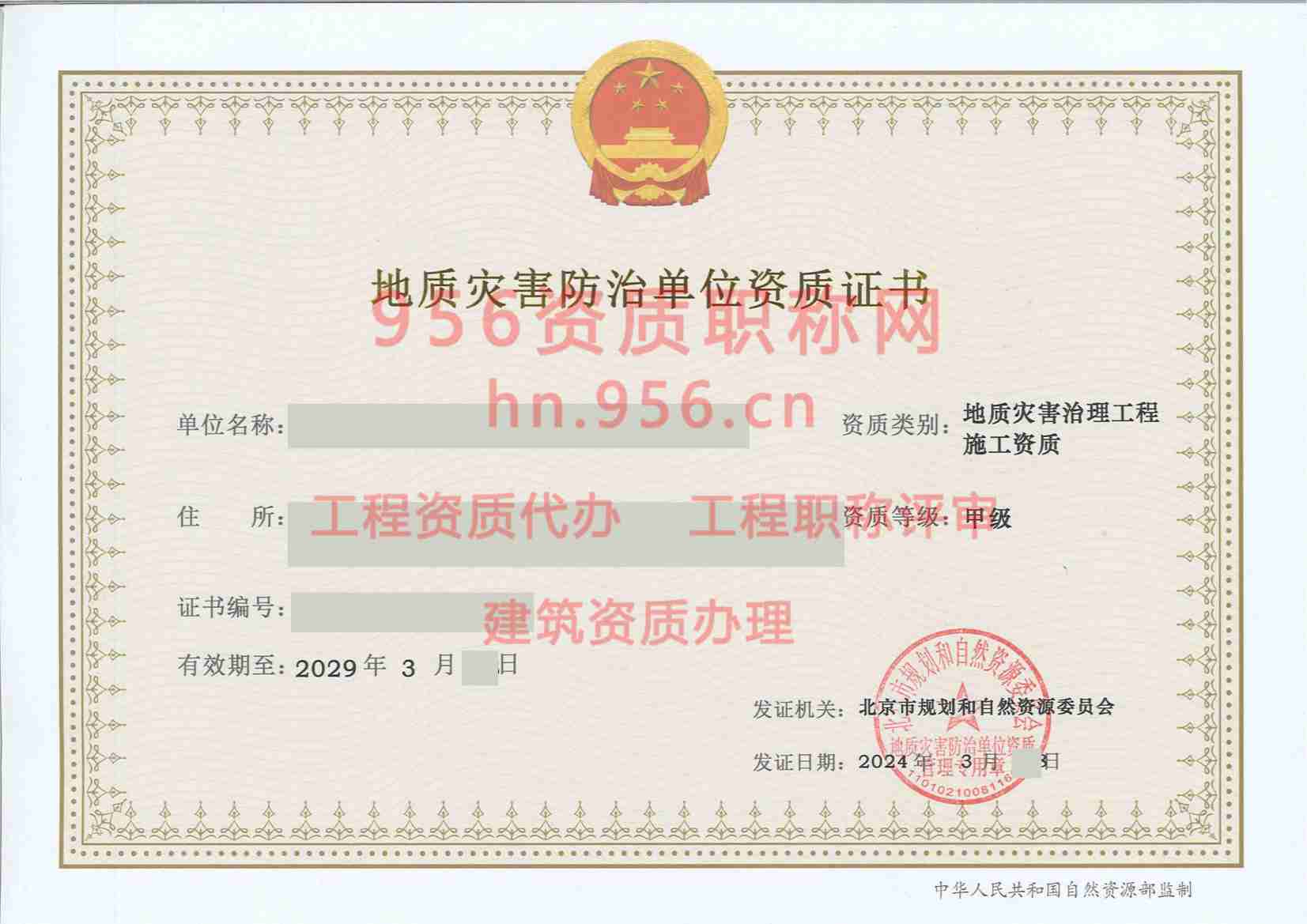 2024年3月北京市甲级地质灾害防治单位【工程施工】资质证书展示01