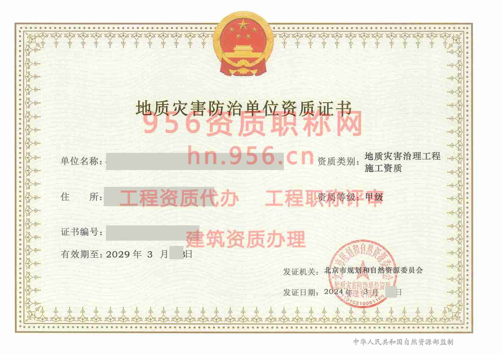 2024年3月北京市甲级地质灾害防治单位【工程施工】资质证书展示02