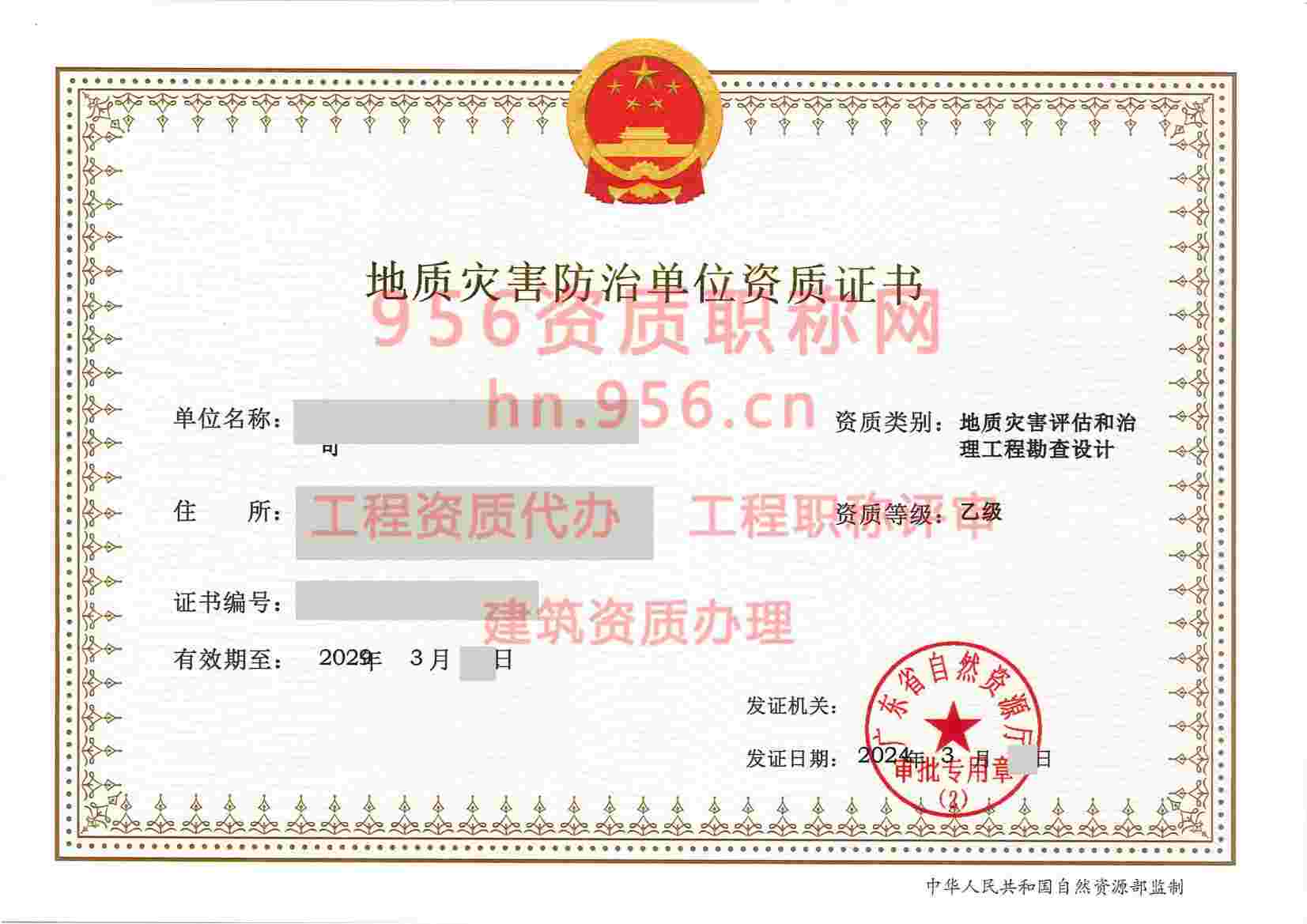 024年12月河南省乙级地质灾害防治单位【地质灾害评估和治理工程勘查设计资质】资质证书展示