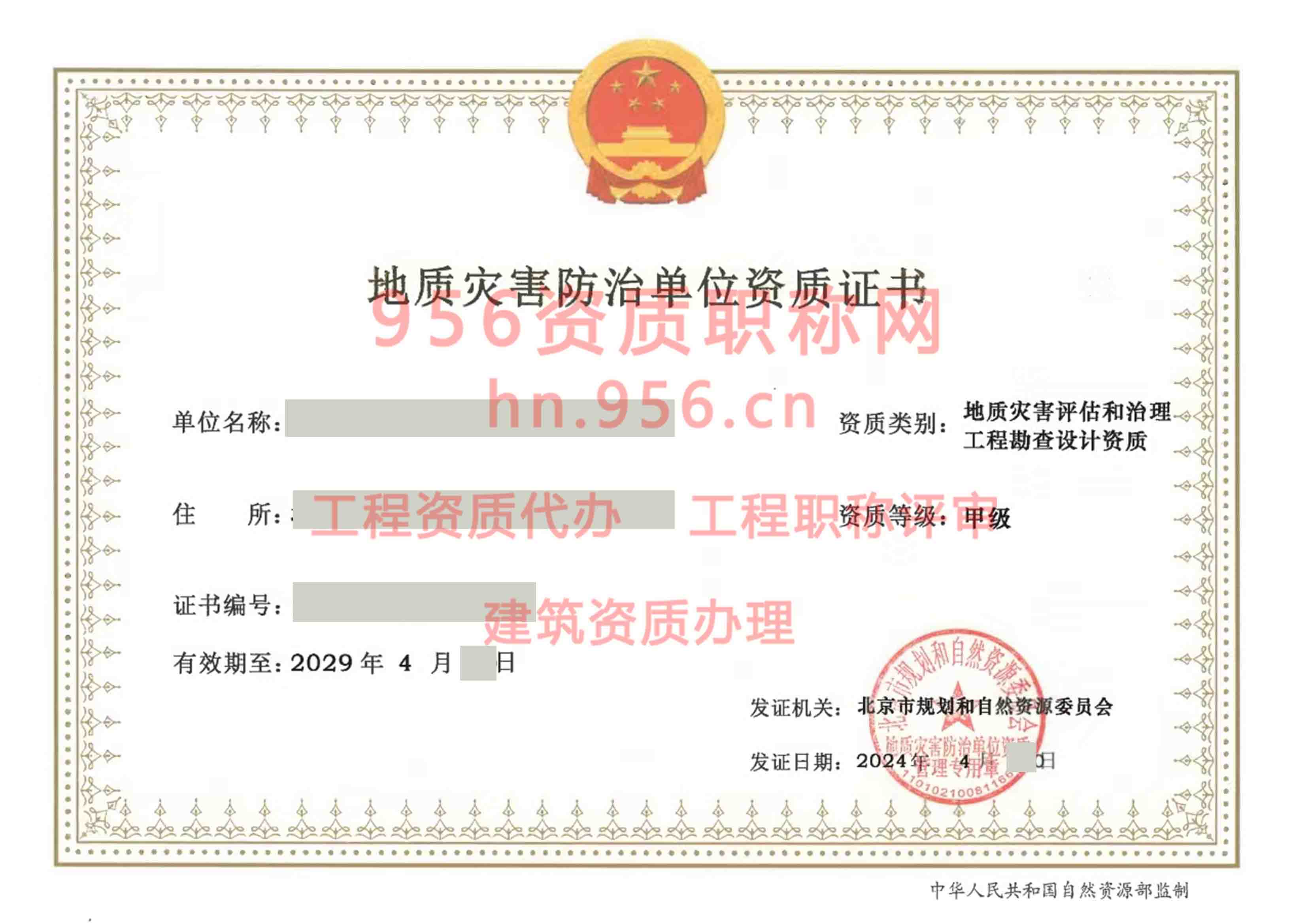 2024年4月北京市甲级地质灾害防治单位【工程勘查设计】资质证书展示01