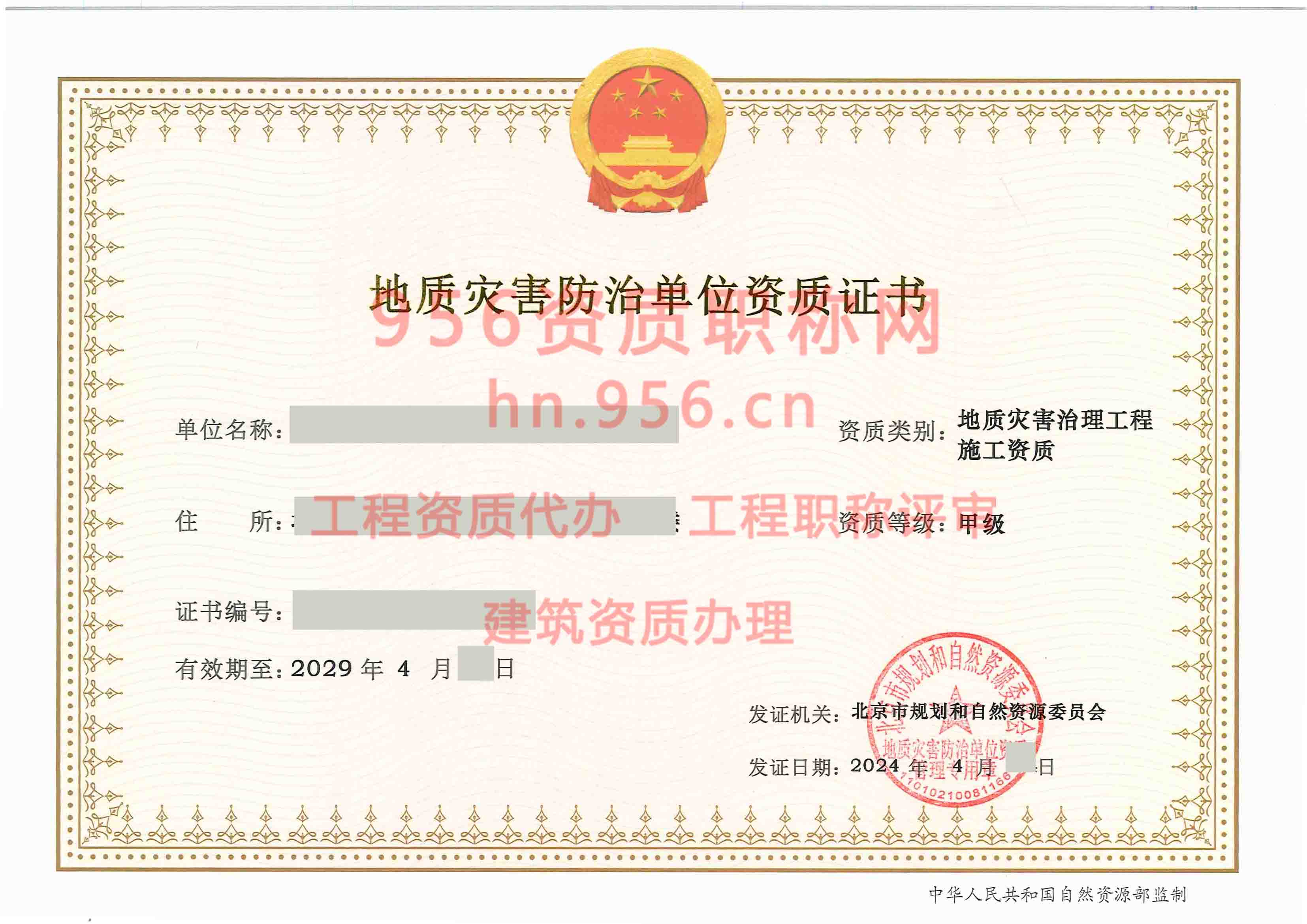 2024年4月北京市甲级地质灾害防治单位【工程施工】资质证书展示02