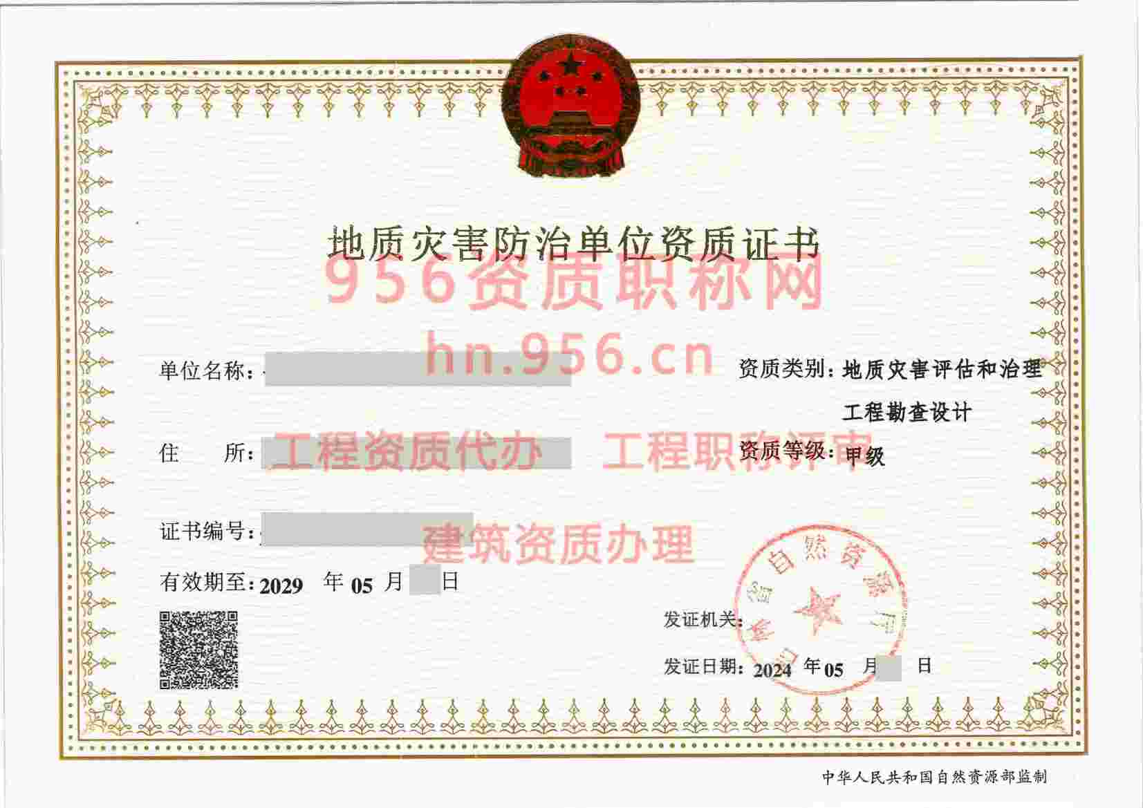024年12月河南省乙级地质灾害防治单位【地质灾害评估和治理工程勘查设计资质】资质证书展示