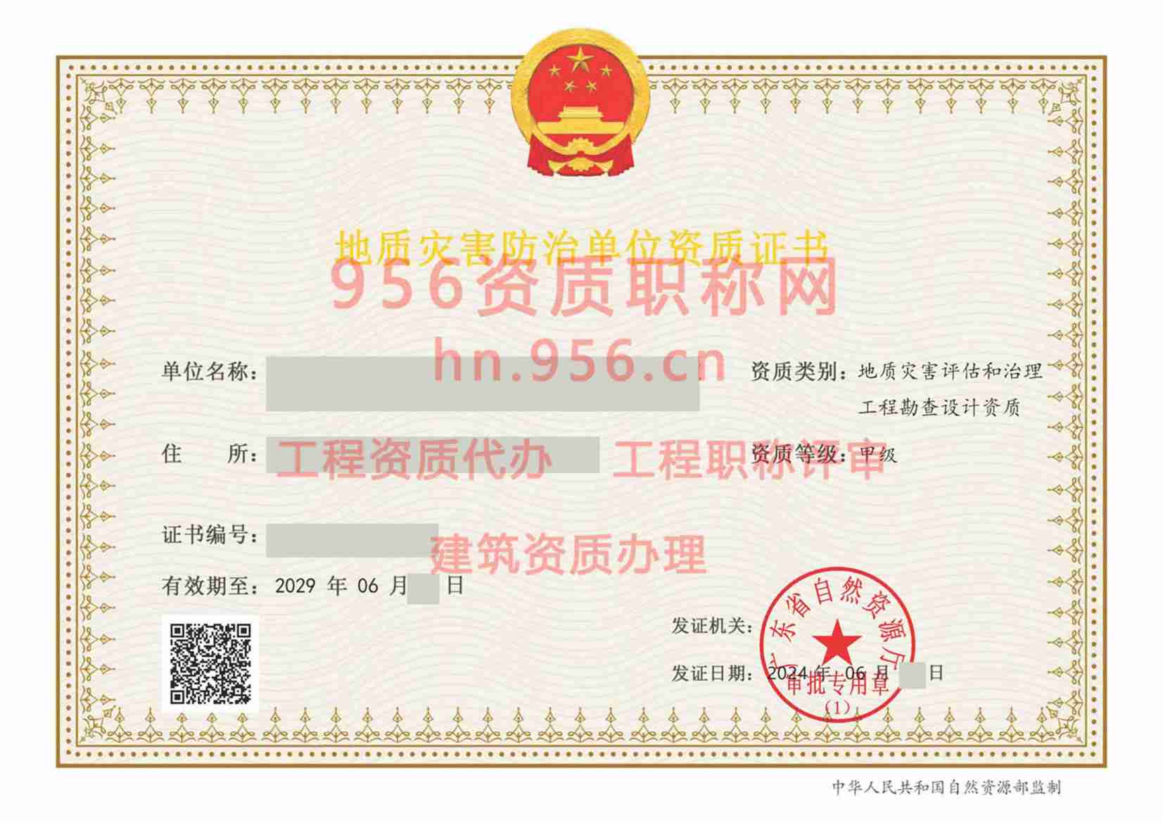 024年12月河南省乙级地质灾害防治单位【地质灾害评估和治理工程勘查设计资质】资质证书展示