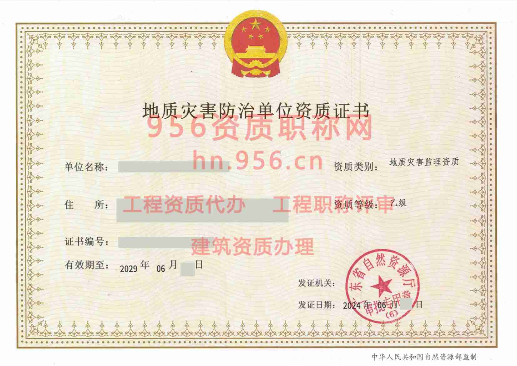 024年12月河南省乙级地质灾害防治单位【地质灾害评估和治理工程勘查设计资质】资质证书展示