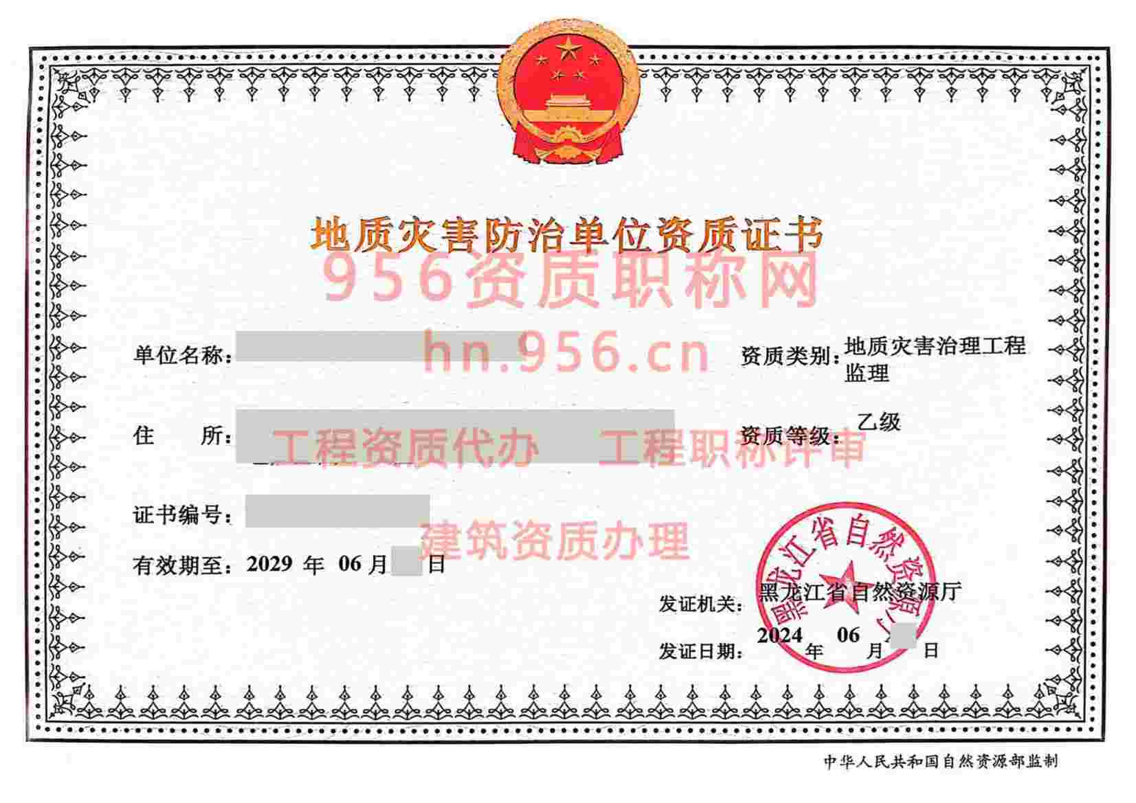 2024年6月黑龙江省乙级地质灾害防治单位【监理】资质证书展示