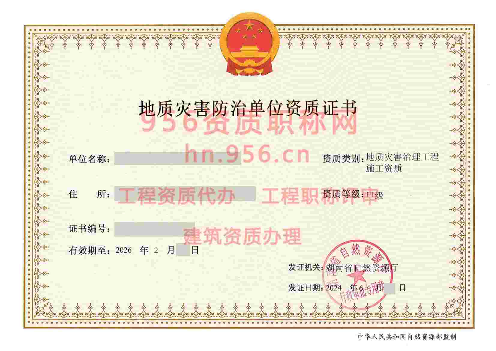 2024年6月湖南省甲级地质灾害防治单位【工程施工】资质证书展示02