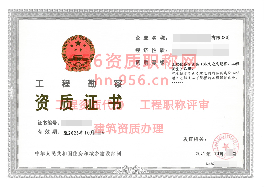 2021年10月福建省乙级工程勘察资质证书案例展示