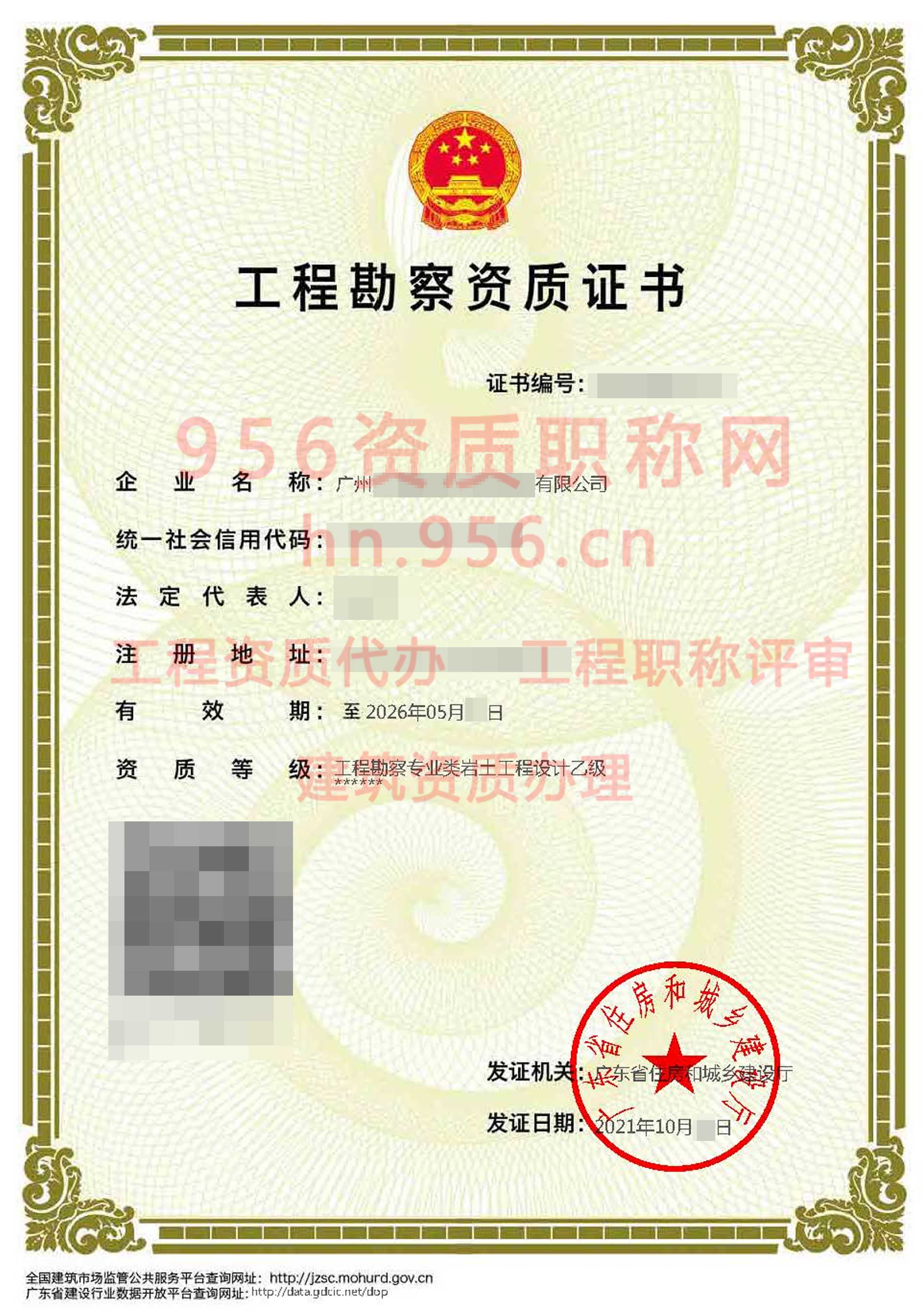 2021年10月广东省乙级工程勘察资质证书案例展示
